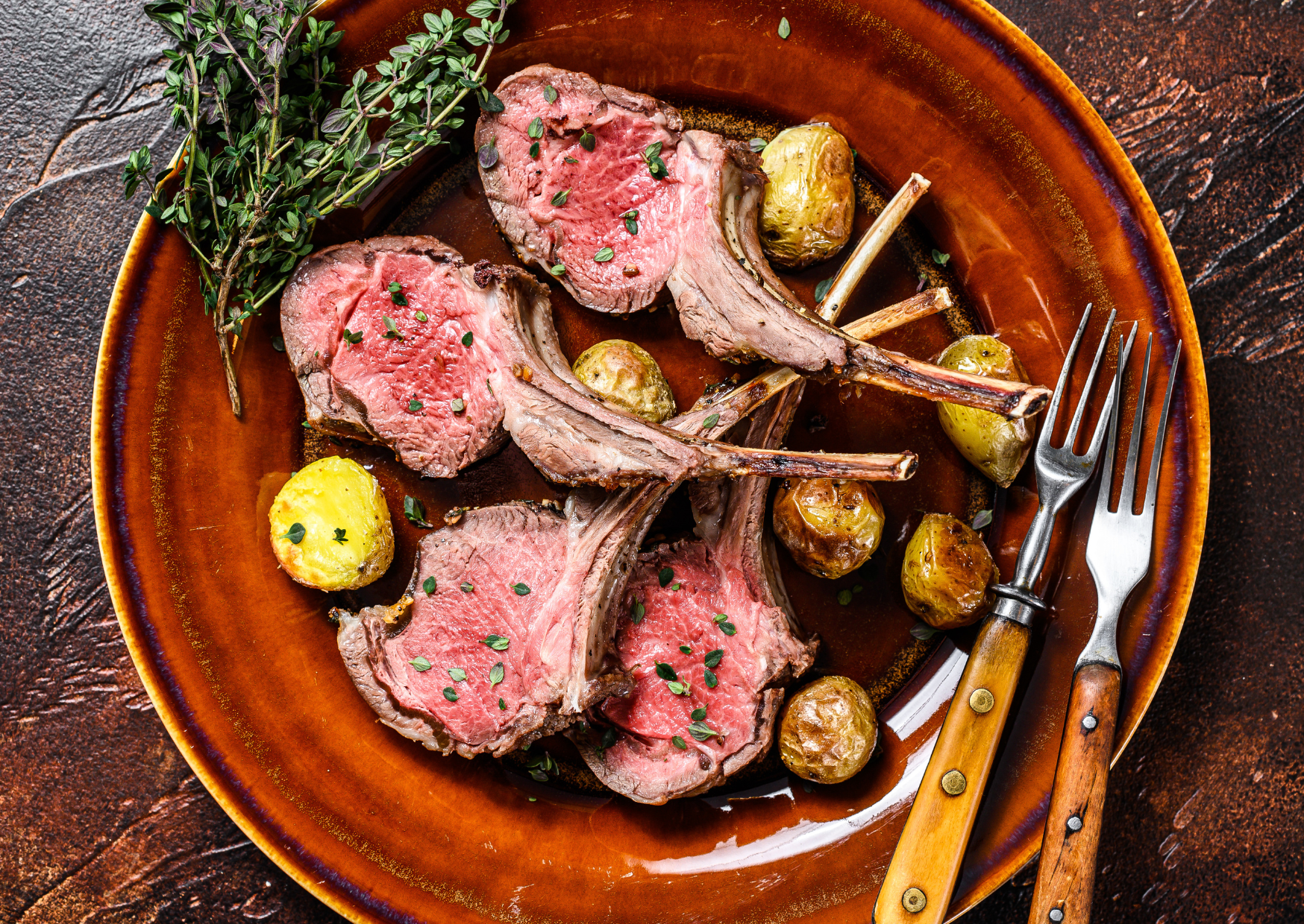 Králičí hřbety, ragú z barevné čočky, omáčka z hrubozrnné hořčice