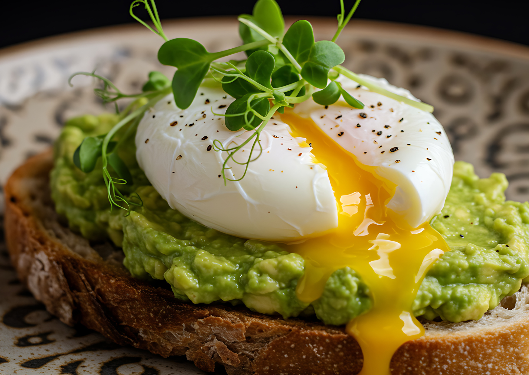 Chléb s avokádovým dipem, zastřené vajíčko, petrželová majonéza,